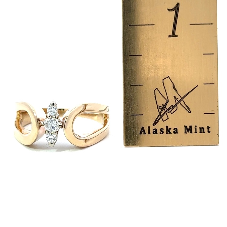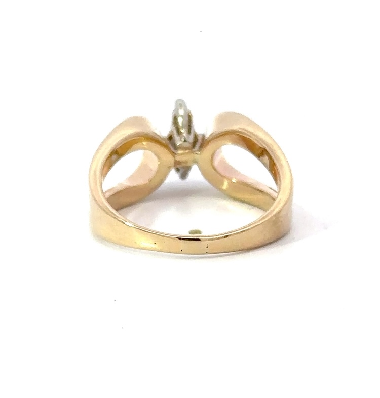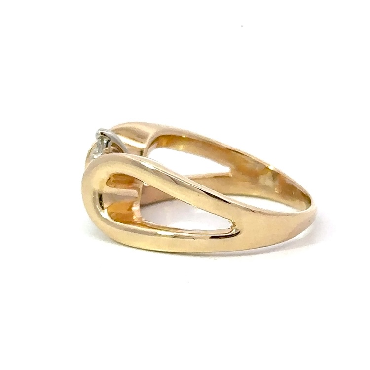 This lady’s estate ring features 0.25 ct of diamonds, clarity SI-I, color H-I. It is mounted in 72 grams of 14k yellow gold. Ring size 8.5.