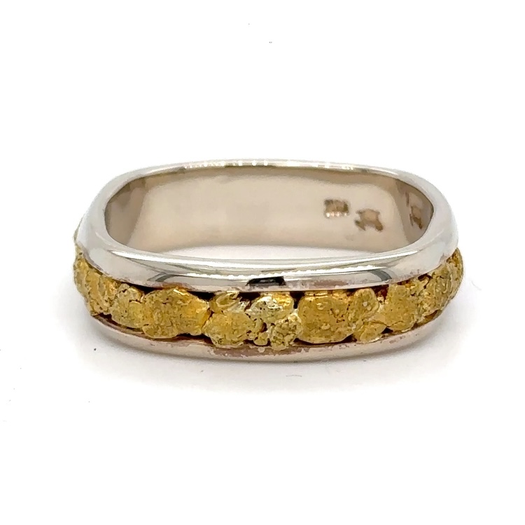 This ladies ring is made from natural Alaskan gold dust melted and fashioned into a beautiful polished band with a genuine orange diamond mounted flush in the ring. Great for everyday wear.