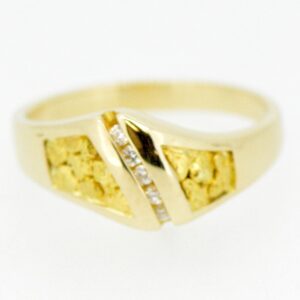 Ladies diamond and gold nugget ring set in 14k gold.