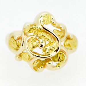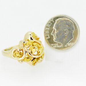 Gold nugget ring set in 14k gold setting with natural Alaskan gold nuggets.