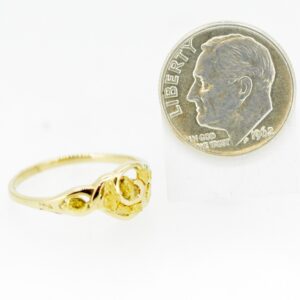 Gold nugget ring set in 14k gold setting with natural Alaskan gold nuggets. Weighs 1.3 dwt.