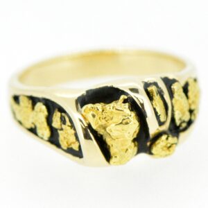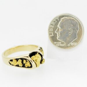Gold nugget ring set in 14k gold setting with natural Alaskan gold nuggets with antiquing. Weight is 4.2 dwt.