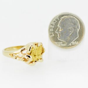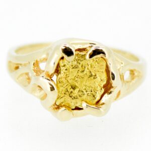 Ladies 14k gold freeform setting featuring a natural Alaskan gold nugget in the center.
