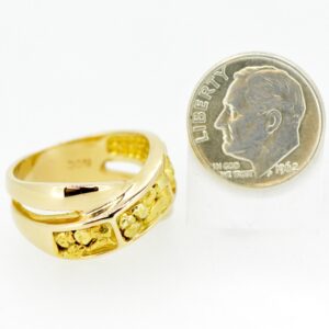This ladies gold nugget ring is set in 14k yellow gold. The ring comes in a nice box. It shows up ready to give to someone special, even if that special someone is you.