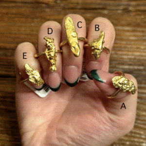 Formation of Gold Nuggets: Geological processes deep within the Earth’s crust form gold nuggets. Miners typically find gold nuggets in quartz veins or other mineral deposits. Later, weathering and erosion can break these deposits apart, releasing gold particles and nuggets into rivers and streams. Each piece is one of a kind with no two being exactly alike.