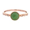 This oval jade ring 18k rose gold is a beautiful piece to add to your collection. There are three diamonds on both sides of the jade on the band. 18k rose gold. The head of the ring measures about 6x8mm. Ring size 6.
