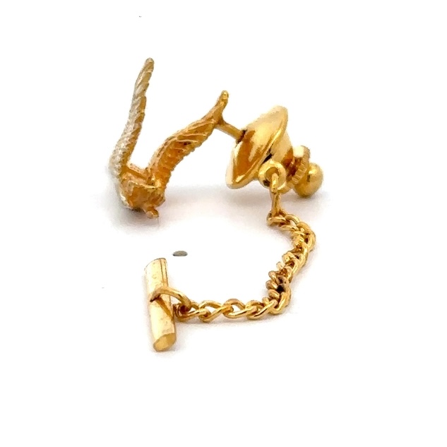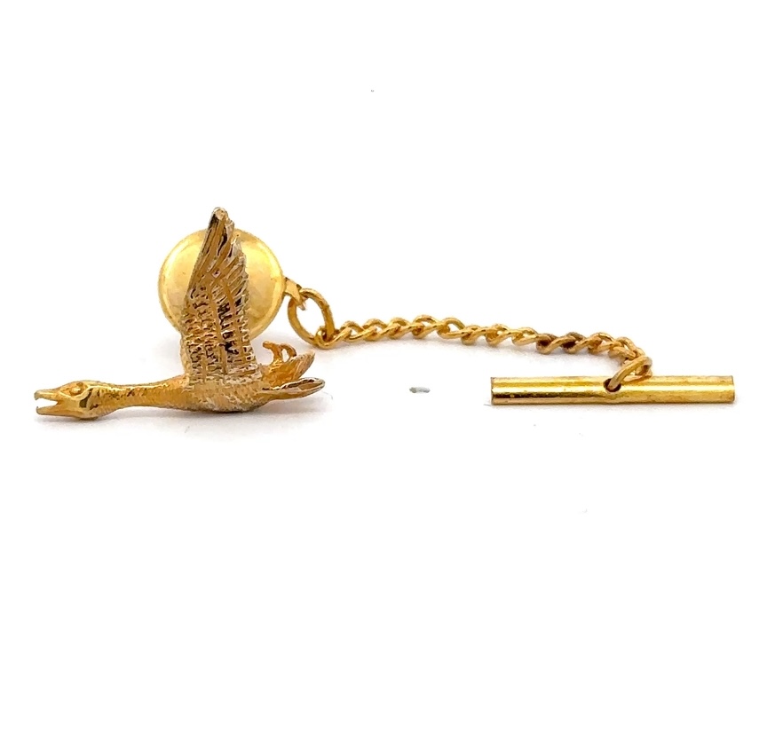 This 10k goose tie tack weighs 3.9 grams and is 12mm tall and 19mm long.