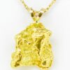 This gorgeous one of a kind nugget features a classic 14k split bail. This gold nugget pendant weighs 15.7 DWT and comes on a gold plated chain packaged in a nice box. It shows up ready to give to someone special, even if that special someone is you.