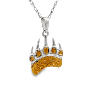 Gold Nugget Bear Paw Sterling Silver Pendant