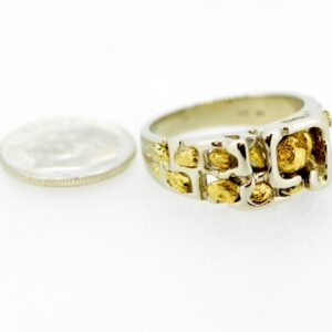 This men’s 14k white gold nugget ring is set in 14k yellow gold. The ring comes in a nice box. It shows up ready to give to someone special, even if that special someone is you.