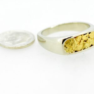 This men’s 14k white gold nugget ring is set in 14k white gold. The ring comes in a nice box. It shows up ready to give to someone special, even if that special someone is you.