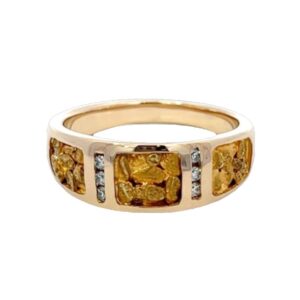 Check out this unique men’s diamond & gold nugget ring that is set in 14k gold setting.