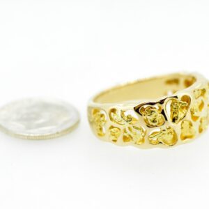 Men’s gold nugget ring set is in 14k gold setting. Approximate weight is 7.2 dwt.
