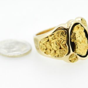 Men’s gold nugget ring set is in 14k gold antiqued setting. Approximate weight is 16.1 dwt. This is a very large heavy weight ring.
