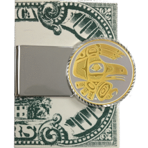 These money clips feature our beautiful Totemic Raven medallions. They are available with either a 1/4 or 1 oz. gold relief medallion. We protect the front of the medallions with an epoxy coating and they come packaged in a nice gift box.