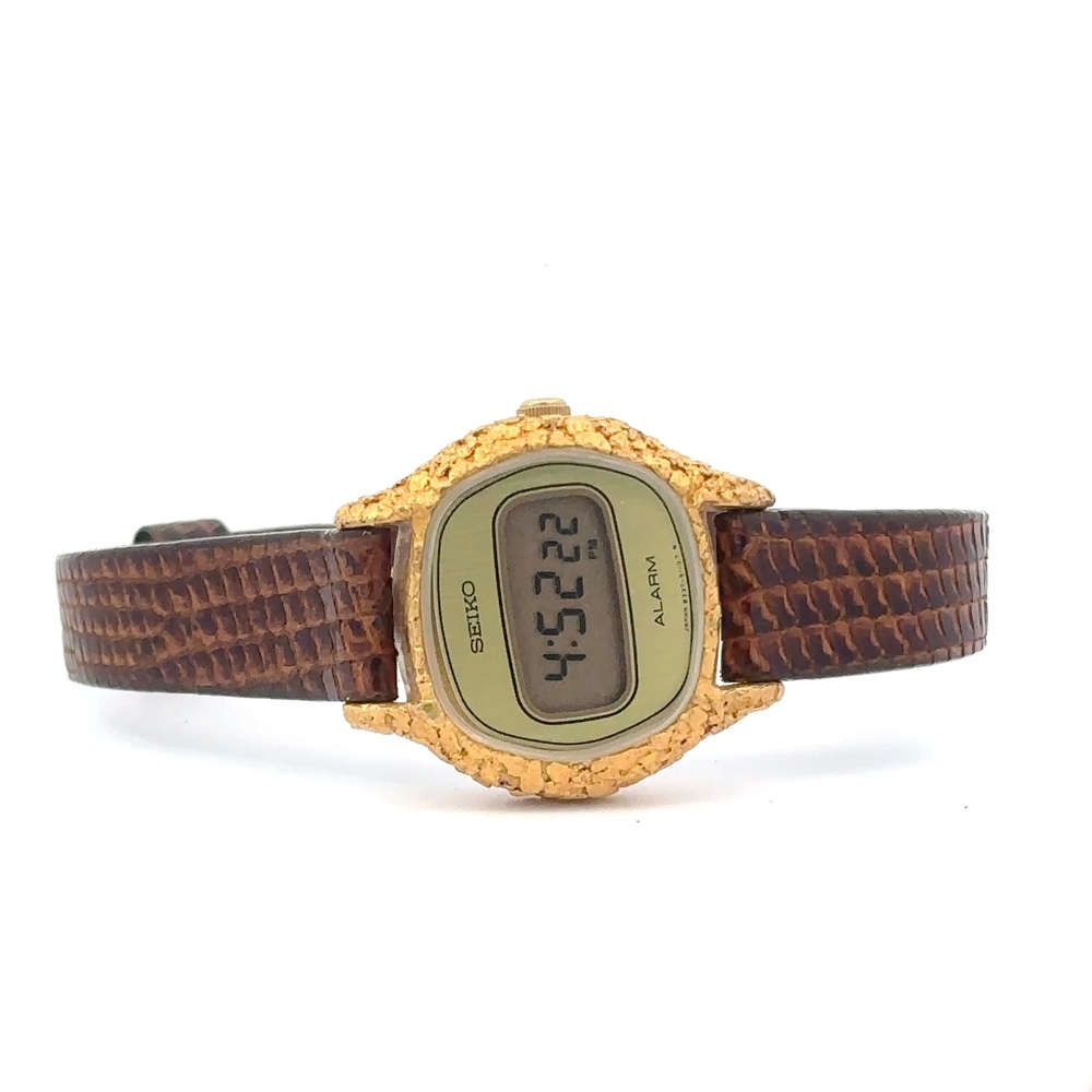Seiko Alaskan Gold Nugget Digital Watch Face with Leather Band