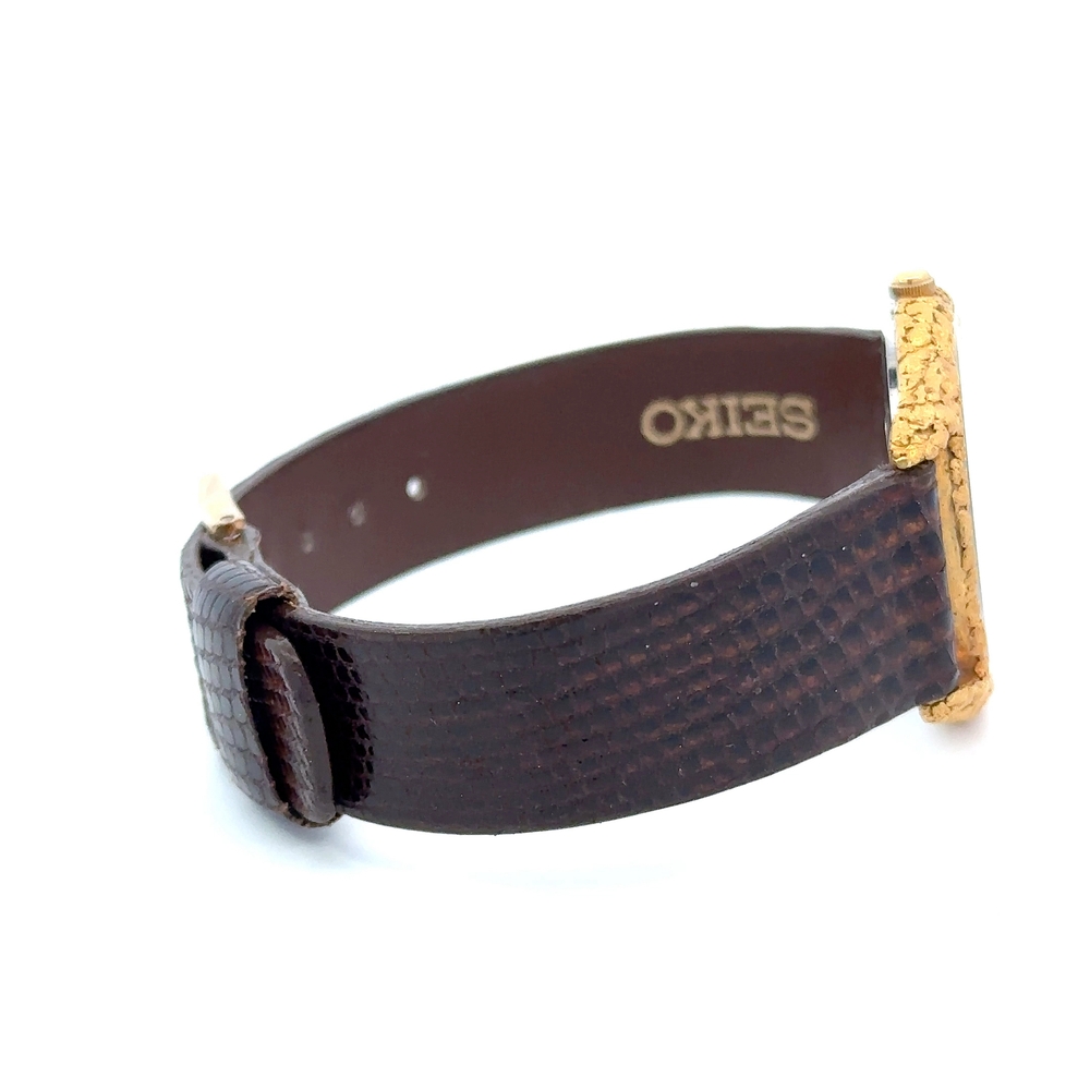 Seiko Alaskan Gold Nugget Watch Face with Leather Band