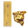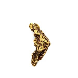 This 88.6 gram (over 2.8 troy ounces!) natural gold nugget was found in Alaska. The nugget measures about 2 1/4″ tall, almost 1 inch wide, and over 1/2″ at its thickest. We purchased this nugget as part of a collection from Homer Alaska, they have been collecting these for many years and have finally decided to sell.