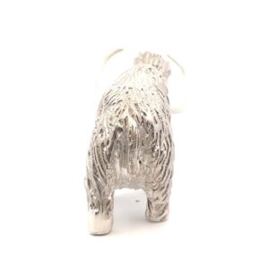 This hefty silver woolly mammoth weighs approximately 10.9 ounces of .999 pure silver, is solid and not hollow. It is almost 3 inches tall and 4.5 inches long.