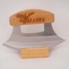 This sun bleached moose antler Ulu is created here in Alaska. The handle and base are both made out of sun bleached moose antler. Additionally, the blade is made out of stainless steel. Due to the material being natural, each knife and base set have a distinctive one of a kind look. This piece makes a great traditional knife for a collector. As well as a useful tool in the kitchen for vegetables and pizza.