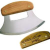 This authentic Alaskan Native ulu was handcrafted by knifemaker Wayne Hunt and artist Donna Wilcox.This knife features a handle made of caribou antler with scrimshaw artwork of a polar bear. Alaska Natives hunt caribou for food, they also use the antler, hide and other parts so that there is very little waste when finished. This knife comes with an antler stand so you can display it in your kitchen when not in use. Each of these knives are one of a kind, and since the handles are a natural product, it will vary slightly in size and color.